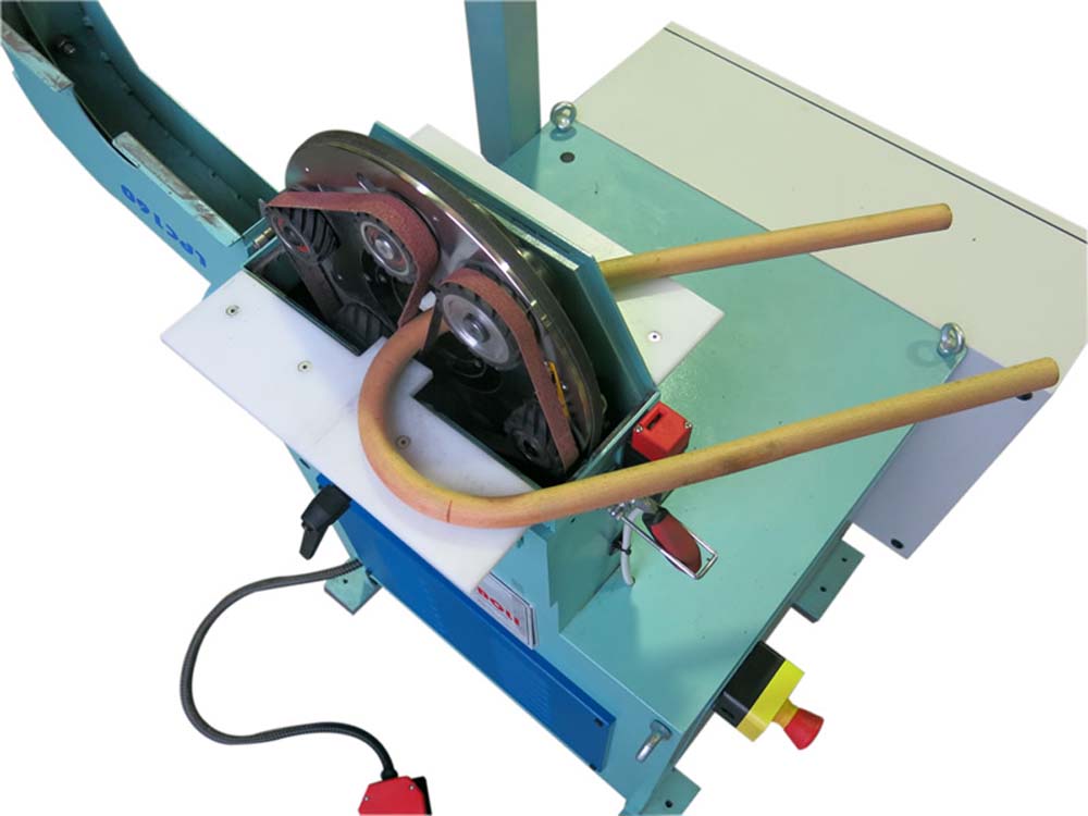 A.m. machine allows sanding operations on parts with max. diameter 46 mm. - minimum bending radius 80 mm. (for “U” bent parts), both for shaped and taper parts.